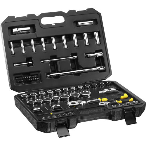Bi-materiałowe rękojeści grzechotek gwarantują pewny chwyt oraz komfort użytkowania, nawet podczas intensywnej pracy. Nowa generacja nasadek z profilem MAXIDRIVE optymalizuje kontakt z nakrętką, redukując ryzyko jej uszkodzenia. Ponadto, dzięki czytelnym oznaczeniom rozmiarów korzystanie z narzędzi jest niezwykle intuicyjne, a różnorodność elementów w zestawie pozwala na realizację najbardziej wymagających zadań.