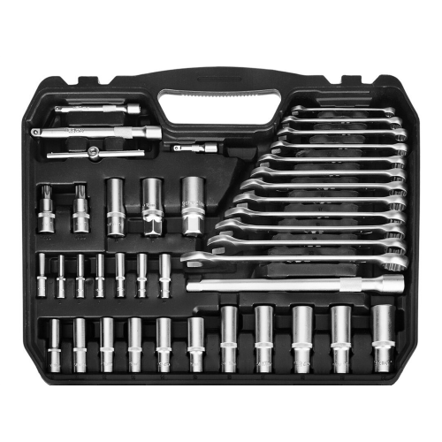 • W skład zestawu wchodzą: klucze, nasadki, grzechotki oraz bity, które umożliwiają wykonanie szerokiego zakresu prac naprawczych, montażowych i serwisowych.