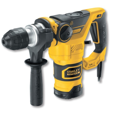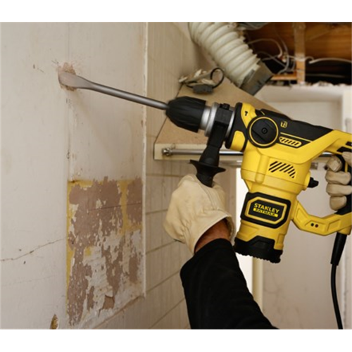 Mlotowiertarka SDS-Plus Stanley FME1250K została wyposażona w silnik o mocy 1200W pozwalający na kompleksowe wykonywanie czynności związanych z wierceniem i dłutowaniem.