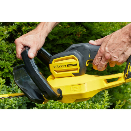 Nożyce do żywopłotu Stanley SFMCHT855B-XJ z długim brzeszczotem z podwójnymi ostrzami wycinanymi laserowo i wykonanym ze stali hartowanej — dzięki niemu operator może docierać do przewężeń i pracować z grubszymi gałęziami. Funkcja PowerSaw zwiększa moc narzędzia w momencie wykonywania wymagających zadań. Zintegrowany wskaźnik stanu akumulatora pozwala lepiej rozplanować dzień pracy. Lekka, kompaktowa konstrukcja czyni użytkowanie znacznie wygodniejszym. Uchwyt pomocniczy został ogumowany, dlatego też dobrze lezy w dłoni — zwiększa to manewrowalność. Po zakończeniu pracy można odwiesić narzędzie na systemie ściennym Stanley Versatrack (możliwość dokupienia), dzięki zintegrowanemu hakowi.