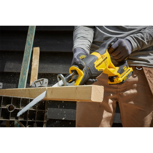 Piła szablasta V20 SFMCS300B do prac w drewnie i przy konstrukcjach metalowych, pomocna też przy pracach rozbiórkowych. Długość skoku piły to 25mm, a generowana przez silnik liczba skoków na minutę wynosi do 3000. Lekka konstrukcja zmniejsza zmęczenie rąk użytkownika, pomaga również w precyzyjnym prowadzeniu urządzenia. Zmiana brzeszczotu nie wymaga żadnych narzędzi, operator może zatem szybko dopasować ostrze do bieżących potrzeb. Czytelny wyświetlacz poziomu naładowania baterii. zalecane użycie akumulatorów 2.0 lub 4.0Ah z serii 18V STANLEY FATMAX V20. W razie potrzeby możliwe jest szybkie ładowanie bez efektu pamięci - znacznie przedłuża to żywotność akumulatorów.