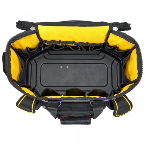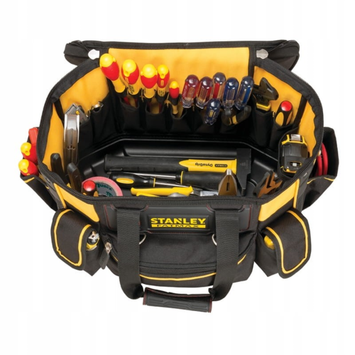 Torba 18" Fatmax Stanley FMST1-70749 wykonana została z mocnego materiału, który zwiększa wytrzymałość. Pojemność torby umożliwia przenoszenie i przechowywanie dużej ilości elektronarzędzi i narzędzi wraz z akcesoriami. Miękki pasek na ramię i uchwyt z gumy zapewnia wygodę przenoszenia torby, także przy pełnym załadowaniu. Operator ma zapewniony szybki dostęp do narzędzi, dzięki pionowym kieszeniom.