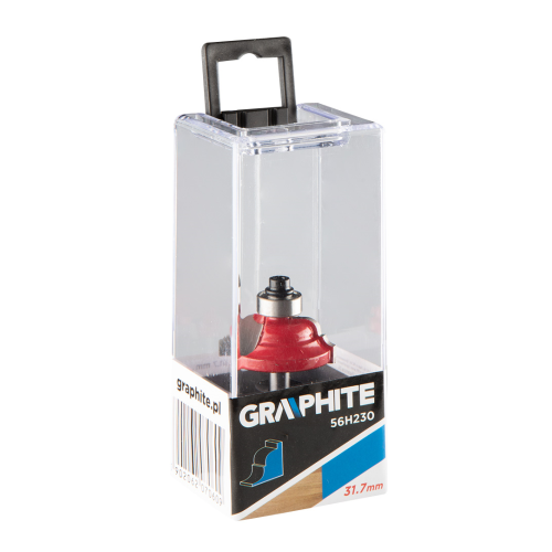 Frez kształtowy z łożyskiem, ozdobny, HM, 31.7 x 12.7 mm, trzpień 6 mm GRAPHITE (nr ref. 56H230) przeznaczony do precyzyjnej obróbki m.in. drewna, PCV, płyt wiórowych przy pomocy frezarek górnowrzecionowych. Głowica wyposażona została w płytki skrawające wykonane z węglika spiekanego. Frez wyposażony został w łożysko, które ułatwia prowadzenie frezarki. Wymiary części roboczej: średnica 31.7 mm, wysokość 12.7 mm; średnica trzpienia 6 mm.