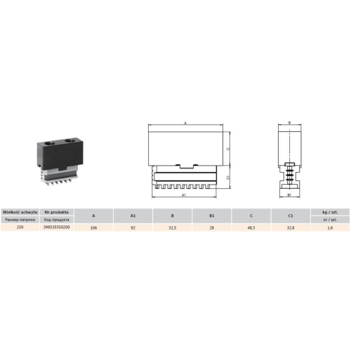 Szczęki dzielone miękkie-komplet, przeznaczone do samocentrujących uchwytów spiralnych 3-szczękowych BISON z mocowaniem ręcznym: 32**, 35**.