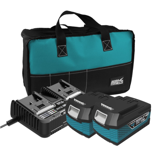 Zestaw startowy 18V Dedra DED7030G04 składa się z 2 akumulatorów, które wyposażone zostały we wskaźniki stanu naładowania, pozwalając operatorowi na lepszą organizację dnia pracy. Brak efektu pamięci sprawia, ze akumulatory dłużej zachowują żywotność. Duża pojemność umożliwia długotrwałą pracę. Poza akumulatorami w zestawie znajduje się ładowarka, która jest w stanie ładować 2 baterie jednocześnie, co usprawnia pracę. Całość dostarczana jest w wytrzymałej walizce narzędziowej, która odporna jest na uszkodzenia mechaniczne. Zestaw nadaje się do wszystkich elektronarzędzi DEDRA w systemie SAS+ All 18V.