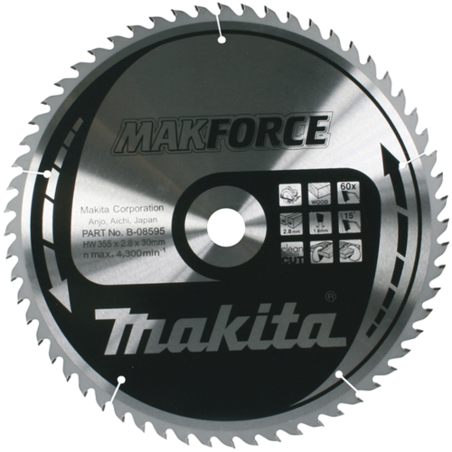 Piła tarczowa Makita MAKFORCE FAST CUT to precyzyjne akcesorium przeznaczone do szybkiego i czystego cięcia. Jest kompatybilna z większością ręcznych pilarek tarczowych. Sprawdzi się zarówno przy cięciach wzdłużnych, jak i poprzecznych drewna, płyt oraz innych materiałów wymagających precyzji. Każdy ząb został precyzyjnie naostrzony, aby zapewnić gładkie krawędzie bez konieczności dodatkowej obróbki.