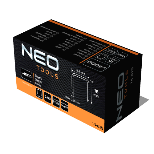 Zszywki galwanizowane do zszywacza pneumatycznego (do modelu NEO 14-572), GA21, Typ 80 (380), długość 16 mm, 4000 szt.