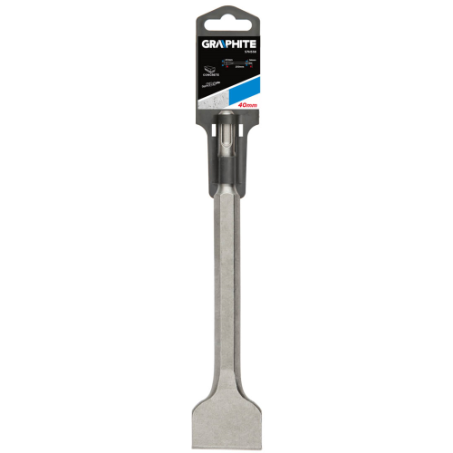 Dłuto GRAPHITE (nr ref. 57H558) z uchwytem SDS+ o szerokości 40mm dzięki wykonaniu z hartowanej stali węglowej idealnie nadaje się do mechanicznego wykuwania otworów i bruzd w elementach betonowych, kamiennych, ceglanych.