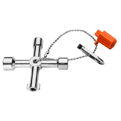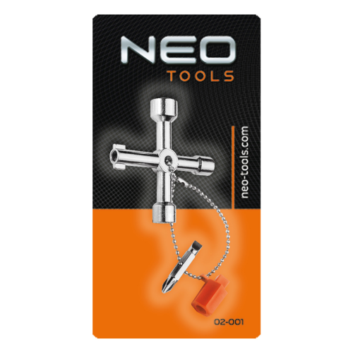 Kluczyk uniwersalny do szafek NEO (nr ref. 02-001) służy do otwierania szafek z popularnymi końcówkami, na łańcuszku. Wykonany ze stopu ZnAl, chromowany. Niezawodność produktu potwierdza 25-letnia gwarancja. Marka NEO spełnia oczekiwania profesjonalistów.