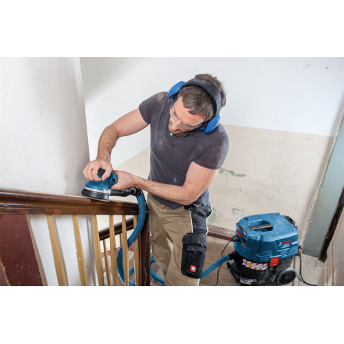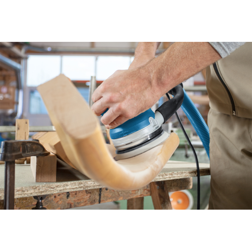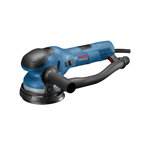 Szlifierka mimośrodowa GET 55-125 Bosch 0601257000 to profesjonalne elektronarzędzie do szlifowania drewna. Została wyposażona w standardowy tryb szlifowania oraz w tryb turbo, który pozwala zwiększyć wydajność pracy. Dzięki wygodnemu przełącznikowi zmiana trybów jest szybka i bezproblemowa. Szlifierka posiada także nową podstawę, która zapewnia lepsze zbieranie urobku i ogranicza przenoszenie drgań na operatora. Narzędzie zaopatrzono także w regulację prędkości, co daje możliwość dostosowania pracy szlifierki do danego rodzaju obróbki. Prędkość jest utrzymywana na stałym poziomie niezależnie od obciążenia, co jest gwarancją równomiernego szlifowania. Do modelu GET 55-125 można podpiąć worek na pył lub odkurzacz, aby zapobiec rozprzestrzenianiu się urobku.