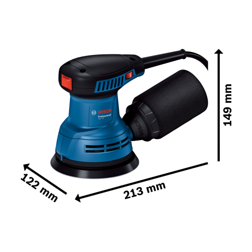Bosch GEX 125 wyposażono w silnik o mocy 250 W, który pozwala na efektywną pracę z prędkością oscylacyjną do 24000 osc./min i prędkością obrotów do 12000 obr./min. Średnica stopy szlifierskiej wynosi 125 mm, co zapewnia szybkie i efektywne zbieranie materiału. Na dużą wydajność pracy korzystnie wpływa także system odsysania pyłu pozwalający zachować czystość w polu roboczym. Narzędzie posiada regulację prędkości obrotowej, dzięki czemu w łatwy sposób dostosujesz jego działanie do wymagań konkretnego materiału.