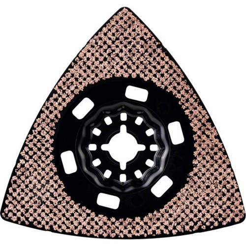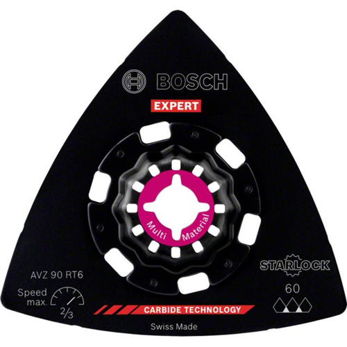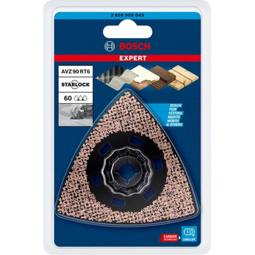 Długotrwałe szlifowanie dzięki technologii Carbide Technology Małe, ale trudne prace szlifierskie mające na celu usunięcie starego materiału i przygotowanie powierzchni do pracy mogą być prawie niemożliwe, jeżeli są wykonywane przy użyciu konwencjonalnych szlifierek lub ręcznie. Nawet jeśli zdołasz dotrzeć do powierzchni, te prace niszczą papier ścierny. Jednak z EXPERT Sanding Plate możesz docierać do narożników i szlifować wymagające materiały za pomocą oscylującego narzędzia wielofunkcyjnego. Dzięki technologii Bosch Carbide Technology grys z najtwardszego metalu jest solidnie przymocowany do powierzchni. Ten ostry grys pozostaje w pełni skuteczny przez długi czas, ponieważ można go czyścić rozpuszczalnikiem. EXPERT Sanding Plate jest przeznaczony do wielu materiałów i dla wielu użytkowników. Grube, rozproszone ziarno RT2 (ziarnistość 20) najlepiej nadaje się do usuwania zaprawy pod płytkami, usuwania kleju do wykładzin lub zgrubnego kształtowania drewna. RT4 (wielkość ziarna 40) najlepiej nadaje się do usuwania grubej farby, ale w razie potrzeby może również poradzić sobie z zaprawą i klejem. Ziarno RT6 (wielkość ziarna 60) jest specjalistą od farb, natomiast RT10 (wielkość ziarna 100) jest idealne do szlifowania i przygotowywania czystych powierzchni drewnianych.