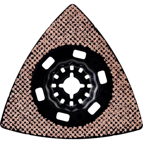 • Kształt delta pozwala na osiągnięcie narożników i efektywne szlifowanie. Taka konstrukcja zapewnia dostęp do trudno osiągalnych miejsc, jednocześnie maksymalizując powierzchnię dla efektywnego szlifowania