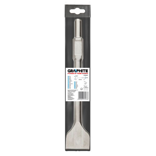 Dłuto GRAPHITE (nr ref. 57H567) z uchwytem HEX o szerokości 75mm dzięki wykonaniu z hartowanej stali węglowej idealnie nadaje się do mechanicznego wykuwania otworów i bruzd w elementach betonowych, kamiennych, ceglanych.