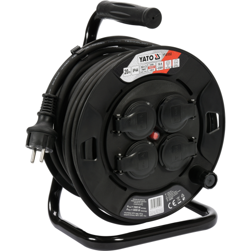 Przedłużacz bębnowy Yato YT-81052 to wysokiej klasy przedłużacz o długości 20m z 4 gniazdami do podłączenia jednocześnie 4 urządzeń. Przewód wykonany jest z 3 miedzianych żył o przekroju 1,5mm² każdy i dodatkowo jest pokryty izolacją wykonaną z naturalnej gumy H055RR-F o wysokiej odporności na uszkodzenia mechaniczne.
