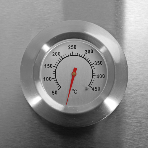 - Duża pokrywa z termometrem zapewnia szybsze grillowanie oraz osłonę przed wiatrem
