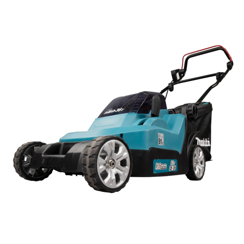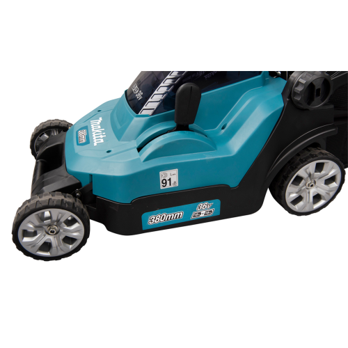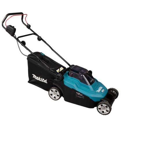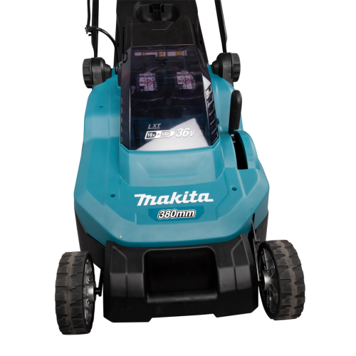 Akumulatorowa kosiarka do trawy DLM382Z Makita to kompaktowe i wygodne w manewrowaniu urządzenie umożliwiające sprawne i skuteczne koszenie trawy na 13 poziomach (możliwość regulacji wysokości w zakresie 20-75mm). Do zasilania kosiarki są potrzebne 2 akumulatory litowo-jonowe 18V, których napięcie sumuje się (36V), dając  jeszcze większą moc. Model DLM382 posiada łagodny rozruch i hamulec elektryczny. Kosiarkę wyposażono również w kosz o pojemności 40l ze wskaźnikiem poziomu napełnienia, składaną rękojeść i łożyskowane koła. Kosiarka może pracować z koszem lub bez kosza. Jest też opcja mulczowania, po dokupieniu odpowiedniej przystawki. Dzięki technologii XPT cechuje się większą odpornością na pył i wilgoć.