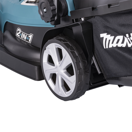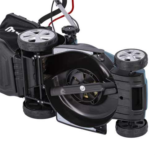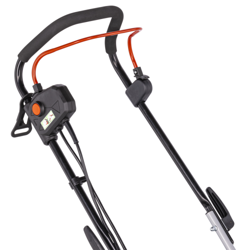 Kosiarka cechuje się niedużą konstrukcją o masie 10,2 kg, dzięki czemu łatwo nią pracować na małej przestrzeni, w tym wokół drzew czy krzewów. Manewrowanie usprawniają także solidne koła oraz ergonomiczny uchwyt. Dzięki kompaktowej budowie oraz możliwości ustawienia sprzętu w pionie również przechowywanie kosiarki w małym schowku narzędziowym czy garażu nie sprawia problemu.
