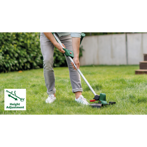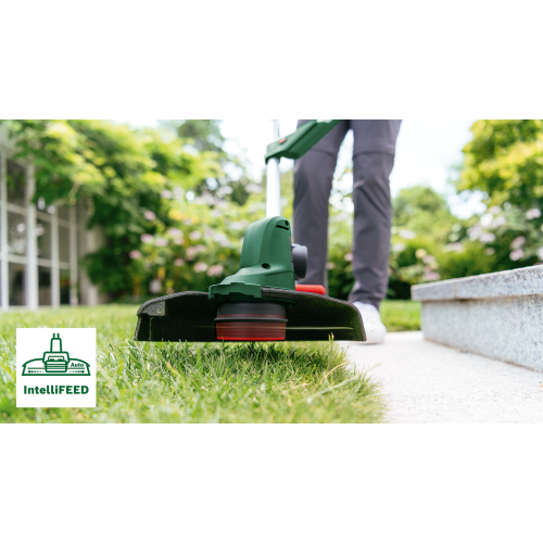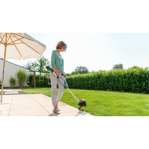Podkaszarka UniversalGrassCut 18-260 Bosch 06008C1D03 z systemem IntelliFEED, który automatycznie naciąga nić - wprowadza to możliwość długotrwałego prowadzenia działań bez przerw. Funkcja przechylenia głowicy w celu podcinania krawędzi poszerza zakres zastosowań. Za pomocą tego urządzenia operator jest w stanie ścinać trawy i chwasty, podkaszać oraz przycinać krawężniki - wysoka wydajność modelu sprawia, że możliwe jest podkoszenie krawędzi aż ośmiu kortów tenisowych. Narzędzie wyposażono w ergonomiczny uchwyt typu V, zapewniający komfortową postawę podczas prowadzenia działań.