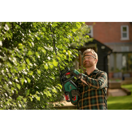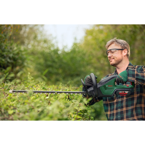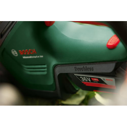 Nożyce do żywopłotów AdvancedHedgeCut36V Bosch 060084A301 z bezszczotkowym silnikiem, którego właściwości zwiększają możliwości eksploatacyjne narzędzia. Urządzenie posiada opatentowany przez Bosch system Anti Blocking, dzięki któremu możliwość blokowania się noży w ciętych gałęziach jest znacznie zredukowana, co przekłada się na większą efektywność pracy. Model ten zbudowany został w technologii Syneon, której działanie zapewnia zawsze optymalną moc lub maksymalny czas pracy w zależności od potrzeb użytkownika. Elektronarzędzie doskonale sprawdza się do grubych gałęzi, jak głóg i berberys. Lekka i ergonomiczna konstrukcja sprawiają, że praca jest wygodna. System 36V POWER FOR ALL sprawia, że narzędzie kompatybilne jest ze wszystkimi akumulatorami tej serii.