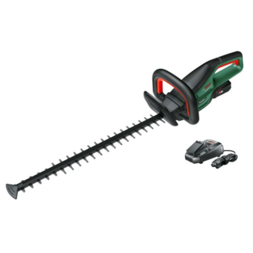 Nożyce do żywopłotów UniversalHedgeCut 18V-50 Bosch 0600849K01 z silnikiem bezszczotkowym zapewniającym dłuższą żywotność. Dzięki opatentowanemu przez Bosch systemowi Anti Blocking operator może ciąć grubsze gałęzie bez obaw, że nóż zablokuje się podczas pracy. Zastosowane w modelu precyzyjne szwajcarskie ostrza sprawiają, że praca jest wydajna, a same noże są bardzo wytrzymałe. Lekka konstrukcja pozwala pracować z mniejszym wysiłkiem. Urządzenie doskonale sprawdza się przy cięciu różnych żywopłotów o średniej wielkości.