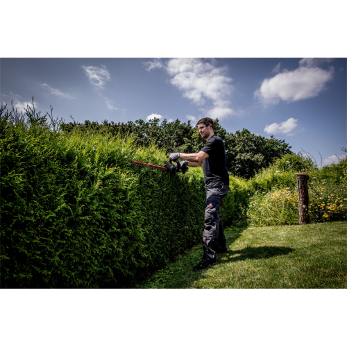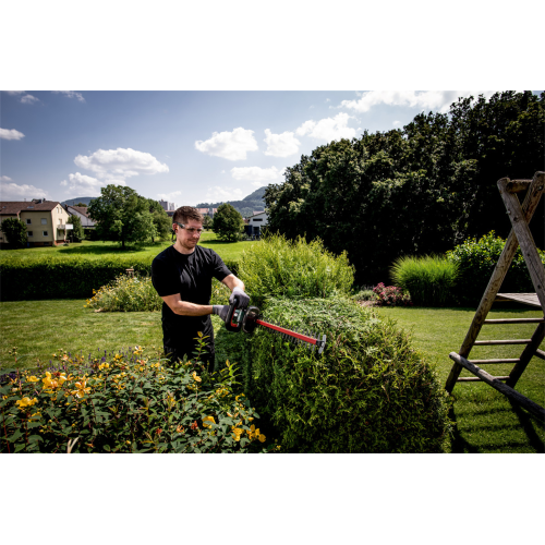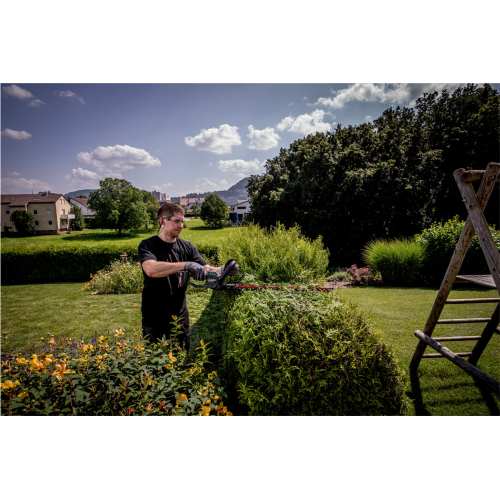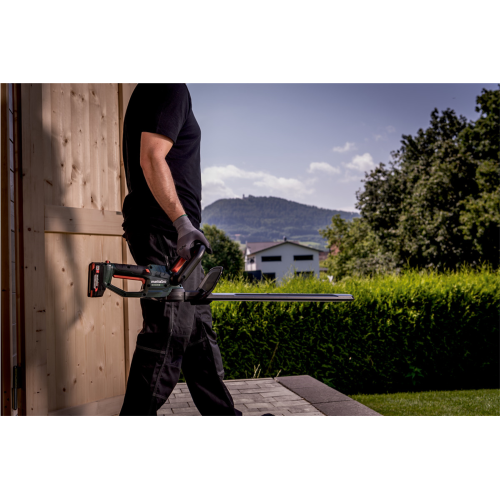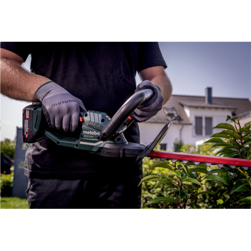Nożyce do żywopłotów HS 18 LTX 45 CARCASS Metabo 601717850 posiada lekką konstrukcję i pracuje bardzo cicho. Laserowo wycinane i diamentowo szlifowane listwy tnące usprawniają prowadzenie czystych cięć. Zeby listwy tnącej mają odpowiednią geometrię oraz kształt kropli, w wyniku czego gałęzie podczas ścinania nie wysuwają się. Zastosowanie długiego przełącznika włącznika oraz wewnętrznego przełącznika na uchwycie pałąkowym sprawia, że praca oburęczna ejst znacznie wygodniejsza, natomaist o bezpieczeństwo dba dodatkowy wyłącznik bezpieczeństwa wraz z hamulcem szybkiego zatrzymania tarczy. Doskonale wyważenie, miękki uchwyt typu soft grip oraz brak wibracji zapewniają wysoki komfort prowadzenia działań. Zderzak chroni użytkownika i przekładnię przed odrzutem. W zestawie znajduje się etui na listwę tnącą, która posiada zawieszkę pozwalającą na wygodne zawieszenie urządzenia na ścianie po zakończeniu pracy. Kompatybilność wszystkimi akumulatorami 18 V i ładowarkami marek CAS.