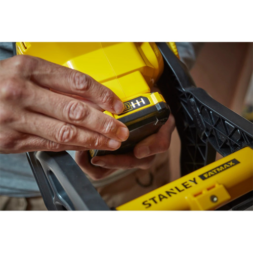 Zalecane jest używanie akumulatora o pojemności 2.0 lub 4.0Ah z serii 18V STANLEY FATMAX V20, które są kompatybilne z innymi urządzeniami z tej kolekcji narzędzi. Czytelny wskaźnik poziomu naładowania akumulatora.