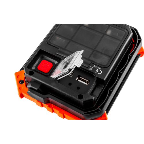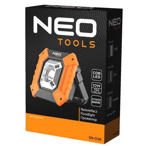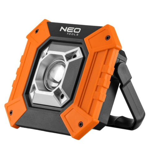Naświetlacz bateryjny COB Neo 99-038 posiada diody LED COB, których moc zapewnia bardzo dobrą widoczność oświetlanego obszaru. Dzięki trzem funkcjom świecenia użytkownik może dostosować jej pracę do warunków panujących w miejscu prowadzenia działań. Zgodność z europejskimi standardami bezpieczeństwa sprwia, że operator ma pewność w pełni bezpiecznej pracy. Wytrzymała obudowa chroni urządzenie przed upadkiem.