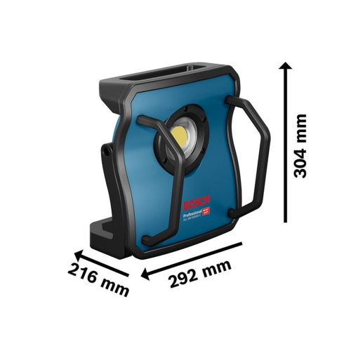 Lampa GLI 18V-1000 C, z wysokiej jakości diodą LED, daje światło jaśniejsze niż naświetlacze halogenowe 500 W, dzięki czemu będzie praktycznym wsparciem w zadaniach wymagających bardzo dobrego oświetlenia. Istotną zaletą tego modelu jest też jego solidna konstrukcja. Reflektor ma metalowy korpus, który dodatkowo chronią gumowa rama amortyzująca wstrząsy oraz dwa pałąki, pełniące również rolę uchwytów. Konstrukcję dopełnia stabilna podpórka umożliwiająca pewne ustawienie lampy, a także wskaźnik jasności i stanu naładowania znajdujący się z tyłu obudowy.