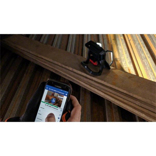 Zasilanie akumulatorem 18 V sprawia, że z reflektora można korzystać w dowolnym miejscu. Elastyczność w kwestiach użytkowania zapewniają też 3 poziomy jasności do wyboru, regulacja kąta oraz gwint 5/8” umożliwiający mocowanie lampy na statywie. Model GLI 18V-1000 C ma także Bluetooth do łączenia z aplikacją mobilną ToolBox, za pomocą której możliwe jest zdalne sterowanie ustawieniami oświetlenia. Co ważne, z aplikacją można łączyć się również bez zamocowanego akumulatora, gdyż reflektor wyposażono dodatkowo w okrągłą baterię.