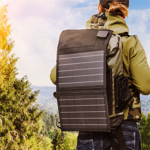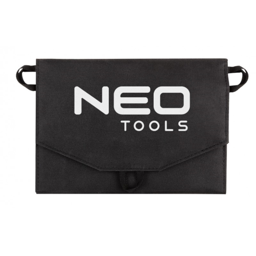 Ładowarka solarna 15W Neo 90-140, dzięki zebranej energii słonecznej, może zasilić urządzenia mobilne, takie jak tablet lub telefon – 2 wyjścia USB wprowadzają możliwość ładowania 2 urządzeń jednocześnie. Panel ten można wygodnie przypiąć do plecaka, wobec czego doskonale sprawdza się jako mobilne źródło zasilania. Po złożeniu zajmuje mało miejsca, co ułatwia jego przechowywanie.