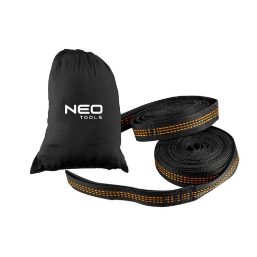 Taśmy do hamaków, 63-141, NEO TOOLS wykonane z wysokiej jakości poliestru zapewniające dużą wytrzymałość, a także spory udźwig do 200kg. Można je wykorzystać do podwieszania i dostosowywania długości zawieszenia hamaków, przy okazji nie uszkadzając kory drzew. Taśma umożliwia przymocowanie hamaka do drzewa, słupków, oraz wielu innych elementów.