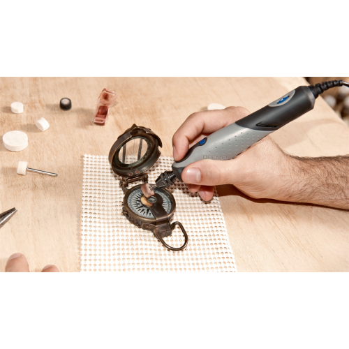 Multiszlifierka Dremel Stylo+ F0132050JM to narzędzie przypominające wielkością i budową długopis. Taka konstrukcja sprawia, że idealnie nadaje się ono do precyzyjnych prac związanych z majsterkowaniem i rękodziełem. Narzędzie jest wielofunkcyjne dzięki możliwości mocowania różnych końcówek roboczych. Posiadacz Stylo+ może grawerować, polerować, szlifować czy rzeźbić, wszystko zależy od tego, jaki projekt wykonuje.