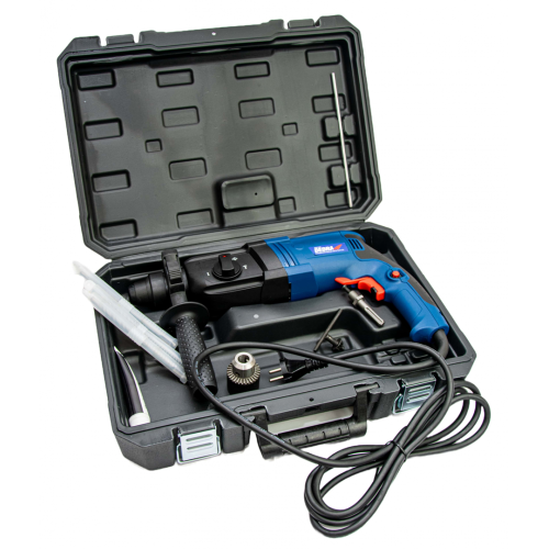 Młot udarowo-obrotowy DED7850 Dedra to klasyczne narzędzie przeznaczone do wiercenia, wiercenia z udarem oraz podkuwania. W zestawie z młotowiertarką znajduje się wymienny uchwyt zębaty, który umożliwia wiercenie w drewnie i metalu z wykorzystaniem wierteł cylindrycznych. Dzięki dodatkowej funkcji zmiany położenia dłuta użytkownik bez problemu poradzi sobie z podkuwaniem w każdej pozycji.