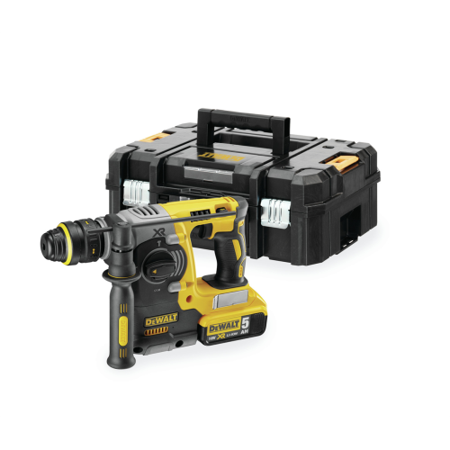 Akumulatorowa młotowiertarka DCH274P2T DeWALT ma najszybszą w swojej kategorii prędkość wiercenia, umożliwiającą wykonanie ponad 90 otworów 10x80mm na jednym naładowaniu akumulatora 5.0Ah. Maszyna posiada bezszczotkowy silnik o dużej wydajności i bardzo małych gabarytach. Lekka konstrukcja posiada system beznarzędziowej wymiany osprzętu tryb wiercenia bez udaru i podkuwanie. Pozwala to na wszechstronne zastosowanie, natomiast młot udarowo-obrotowy o takich parametrach i gabarytach sprawdza się doskonale w czasie wiercenia otworów pod kotwy. Elektroniczne sprzęgło likwiduje szarpnięcie przy zakleszczeniu i wydłuża żywotność maszyny. Niski poziom wibracji poprawia komfort i wydłuża maksymalny czas pracy jednego operatora. Wbudowana lampa LED z funkcją opóźnionego gaśnięcia gwarantuje doskonałą widoczność strefy roboczej. Zestaw zawiera wielonapięciową ładowarkę i dwa pojemne akumulatory 5.0Ah. Profesjonalny sprzęt dostarczany jest w profesjonalnej walizce systemowej z linii DeWALT T-STAK.