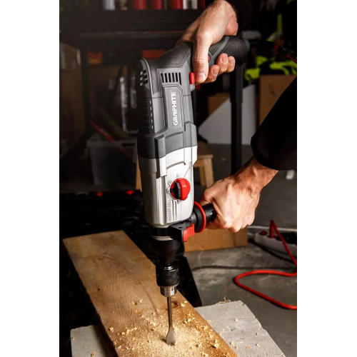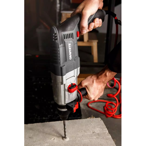 Młotowiertarka Graphite 58G539 to wszechstronne narzędzie stworzone do zadań budowlanych i remontowych. Wyposażona została w silnik o mocy 900 W, generujący udar na poziomie 3.4J, dzięki czemu radzi sobie z wymagającymi materiałami, np. betonem. Sprawdzi się także przy wierceniu w drewnie i metalu (zestaw zawiera uchwyt do mocowania wierteł cylindrycznych). Ma też funkcję płynnej regulacji prędkości (do 950 obr./min), która pozwala dostosować parametry elektronarzędzia do wykonywanego zadania.