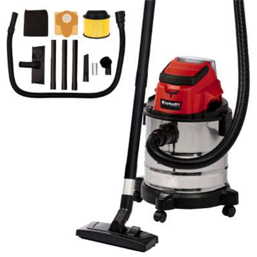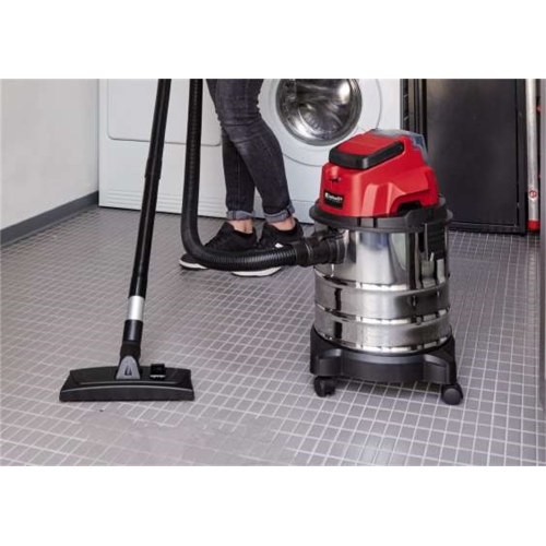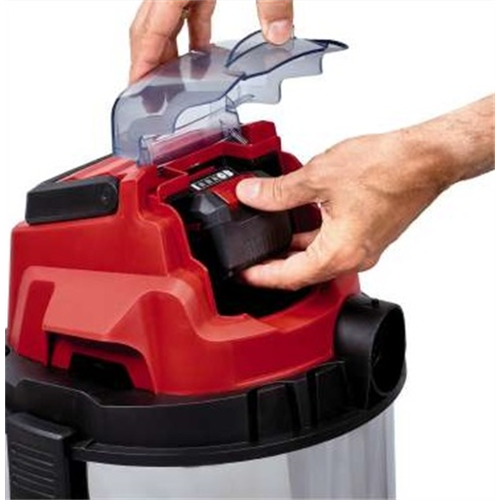 Odkurzacz akumulatorowy Einhell TC-VC 18/20 Li S jest częścią systemu Power X-Change, gdzie jeden akumulator zasila wszystkie urządzenia z tej serii. Odkurzacz może zasysać zarówno suche zabrudzenia, jak również rozlane ciecze znajdujące się w pomieszczeniach gospodarstwa domowego, warsztacie lub piwnicy. Dzięki akumulatorowemu zasilaniu odkurzacz nie jest ograniczony kablem zasilającym i może być użytkowany w każdym miejscu.