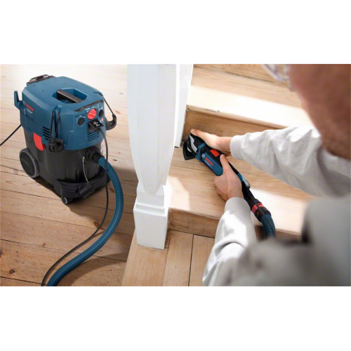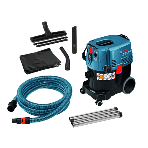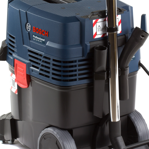 Odkurzacz uniwersalny Bosch GAS 35 M AFC jest do wychwytywania, zasysania, transportu i wydalania wiórów drewnianych, niepalnych suchych pyłów, jak również niepalnych cieczy oraz mieszanek wodno-powietrznych. Jest certyfikowany i odpowiada klasie ochrony przeciwpyłowej M. Znajdzie zastosowanie w przemyśle. Odkurzacz klasy ochrony przeciwpyłowej M jest dostosowany do zasysania i odsysania niebezpiecznych dla zdrowia pyłów o wartości granicznej ekspozycji wynoszącej ≥ 0,1 mg/m3. Wyposażony jest w wydajny silnik o mocy 1200W, co gwarantuje wysoką skuteczność ssania i zadowalające efekty działań. Dzięki płynnej regulacji siły ssania operator ma możliwość dostosowania trybu pracy do warunków roboczych. Odkurzacz Bosch automatycznie się wyłączy w momencie maksymalnego wypełnienia, co gwarantuje absolutną ochronę urządzenia Bosch i skutecznie przedłuża jego żywotność.