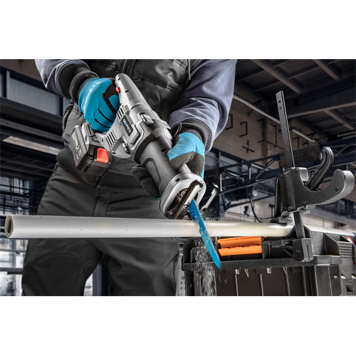 Piła szablasta akumulatorowa 58G017 Graphite Energy+ znajdzie zastosowanie przy pracach rozbiórkowych. Służy do cięcia drewna, metalu i tworzyw sztucznych, w zależności od zastosowania odpowiedniego brzeszczotu. Pilarka 58G017 należy do serii Energy+, co oznacza, że jest zasilana akumulatorem litowo-jonowym 18V kompatybilnym także z innymi narzędziami tej serii.