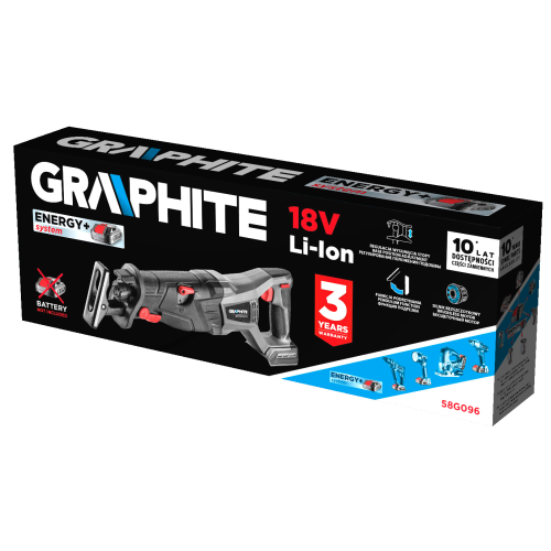 Pilarka szablowa Graphite 58G096 wyposażona została w bezawaryjny silnik bezszczotkowy, dzięki któremu cechuje się długą żywotnością. Urządzenie posiada funkcję podrzynania, umożliwiając wykonywanie większej ilości zadań, a także regulowaną pozycję stopy dla większej wygody użytkowania. Model ten pozwala obrabiać elementy wykonane z drewna, metalu oraz tworzyw sztucznych. Wysokiej jakości brzeszczot daje gwarancję długiego użytkowania bez konieczności wymiany. Kompatybilność ze wszystkimi akumulatorami 18V Li-Ion Graphite Energy+ podkreśla uniwersalność urządzenia.