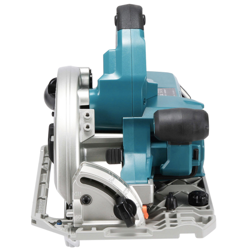 Akumulatorowa pilarka tarczowa DHS782Z Makita to wydajne i wygodne w obsłudze elektronarzędzie, które sprawdzi się przy intensywnym cięciu drewna i materiałów drewnopochodnych. Pilarka posiada silnik bezszczotkowy i jest zasilana dwoma akumulatorami litowo-jonowymi 18V, których napięcie sumuje się, dając 36V. Taka konfiguracja sprawia, że narzędzie cechuje się wysoką sprawnością przy pracy pod obciążeniem. Ponadto dzięki technologii ADT prędkość obrotowa i moment obrotowy są automatycznie dostosowywane do rodzaju pracy, co gwarantuje wysoką efektywność. Model DHS782 wyposażono też w łagodny rozruch, hamulec tarczy, funkcję wydmuchu wiórów i diodę LED. Wyraźne podziałki umożliwiają sprawne ustawienie ostrza do cięcia pod danym kątem, a wskaźnik naładowania pozwala kontrolować czas pracy.