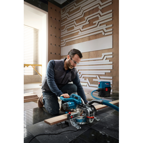 Sieciowa ukośnica GCM 216 Bosch 0601B33000 jest przeznaczona do cięcia drewna i materiałów drewnopochodnych. Po zastosowaniu odpowiedniej tarczy można jej też użyć do cięcia profili aluminiowych i tworzyw sztucznych. Piła GCM 216 to elektronarzędzie, które łączy w sobie wysoką jakość i ekonomiczność. Wyróżnia się stosunkowo lekką i ergonomiczną konstrukcją, co przekłada się na jej komfortowe transportowanie. Piła współpracuje z tarczą o średnicy 216mm. Jej głowica jest przystosowana do pochylania na lewą stronę do 45 stopni, co daje dodatkowe możliwości cięcia. Dzięki wyraźnym podziałkom kątowym oraz wskaźnikowi laserowemu użytkownik może precyzyjnie ustawić piłę pod konkretny projekt. Model GCM 216 posiada także przedłużenia podstawy i zacisk, co ułatwia pracę z długimi elementami. Do ukośnicy Bosch można również podłączyć worek na pył lub odkurzacz w celu odsysania pyłu i wiórów powstających podczas pracy.