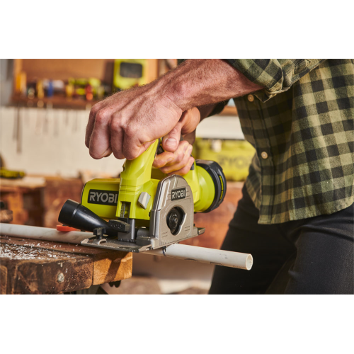 Mini pilarko-zagłębiarka akumulatorowa R18MMS-0 Ryobi 5133004515 to uniwersalne elektronarzędzie, które sprawdzi się przy cięciu drewna, metalu, płyt g-k i tworzyw sztucznych. Umożliwia cięcie pod kątem 90 stopni oraz zagłębianie się w materiał. Funkcja zagłębiania pozwala rozpoczynać przecinanie od środka materiału, co przydaje się, np. przy wycinaniu różnego rodzaju otworów. Pilarka R18MMS posiada też regulację głębokości cięcia oraz przyłącze do odsysania pyłu, do którego można podłączyć odkurzacz. Narzędzie odznacza się kompaktową konstrukcją. Dzięki ergonomicznej, ogumowanej rękojeści jest wygodne w prowadzeniu. Pilarko-zagłębiarka Ryobi należy do linii akumulatorowych elektronarzędzi zasilanych akumulatorem litowo-jonowym 18V ONE+.