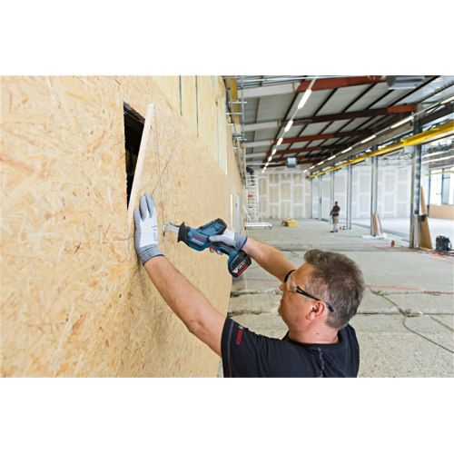 • Akumulatorowe zasilanie sprawia, że piła szablasta Bosch jest mobilna i możne jej używać w każdych warunkach