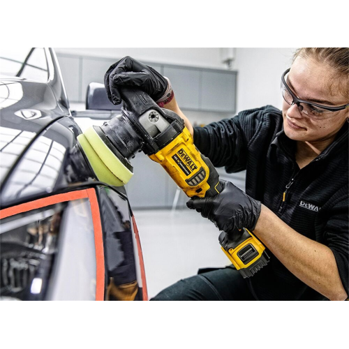 Akumulatorowa polerka DeWalt DCM848N-XJ to profesjonalne urządzenie dedykowane do warsztatów blacharskich oraz dla szkutników, kamieniarzy i stolarzy. Wyposażona w mocny silnik bezszczotkowy 18V, dzięki któremu urządzenie doskonale się sprawdza przy zastosowaniach pod dużym obciążeniem. Zmienna prędkość obrotowa pozwala na szybką i wygodną regulację prędkości w zależności od preferencji. Ergonomiczny, smukły, gumowany obszar uchwytu pozwala na wygodne i niemęczące użytkowanie przez dłuższy czas.