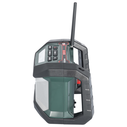 Radio budowlane R 12-18 BT Metabo 600777850 cechuje się kompaktową i trwałą konstrukcją, która sprawdzi się w warunkach roboczych. Radio AM/FM zostało wyposażone w funkcję Bluetooth, która umożliwia bezprzewodowe przesyłanie i odtwarzanie muzyki ze smartfona lub tabletu. Posiada także tuner cyfrowy DSP z podświetlanym wyświetlaczem LCD i automatycznym wyszukiwaniem stacji, co ułatwia jego obsługę. Radio ma też elastyczną antenę. Urządzenie może być zasilane zarówno z sieci elektrycznej poprzez kabel, jak też za pomocą akumulatora litowo-jonowego o napięciu w zakresie 12-18V.
