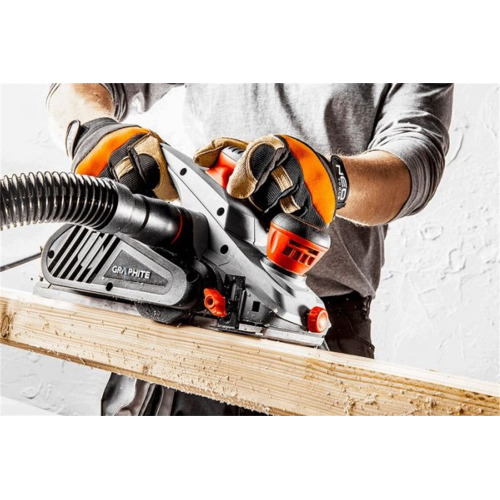 Strug Graphite 59G680 o dużej mocy 1300W sprawdzi się w różnych pracach stolarskich. Umożliwia struganie drewna o stałej szerokości 110mm i głębokości do 3.5mm. Przy struganiu wgłębnym zakres głębokości wynosi od 0 do 14mm.