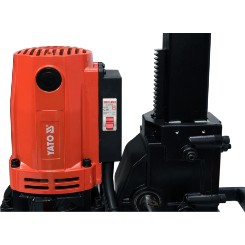 Wiertnica diamentowa Yato YT-81983 umożliwia wydajne wiercenie w żelbecie, betonie i kamieniu naturalnym. Swoje zastosowanie znajduje przede wszystkim w hydraulice, podczas wiercenia pod rury kanalizacyjne, przy montażu klimatyzacji i wentylacji, a także pomp ciepła czy kanalizacji burzowych. Możliwość prowadzenia seryjnych przewiertów do długości aż 1-4m poszerza zakres zastosowań urządzenia. Mocny silnik zapewnia pracę z obrotami wprowadzającymi wysoką efektywność. Przekładnia planetarna wykonana została z mocnej stali 53-56HRC, która zwiększa bezawaryjność oraz zapewnia wysoki moment obrotowy, co pozwala wiercić w szerokim zakresie średnic w nawet najtwardszych materiałach. Urządzenie jest w stanie pracować na sucho i mokro, umożliwiając wykonanie większej ilości prac. Stojan i wirnik mają w 100% miedziane uzwojenie, co zwiększa ich żywotność. Zabezpieczenie termiczne silnika chroni go przed przegrzaniem.