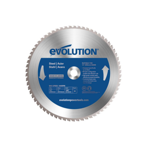 Wysokiej jakości piła tarczowa z uzębieniem z węglika spiekanego firmy Evolution Power Tools. Przeznaczona do cięcia profili stalowych, płaskowników i blach wykonanych ze stali konstrukcyjnych.