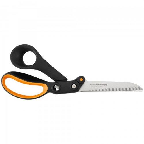 Nożyczki Amplify 24cm Fiskars 1020223 przeznaczone są do grubych i ciężkich materiałów, takich jak dywany, płótna, juta, brezent, skóra czy też dodatki tapicerskie. Dzięki technologii Amplify ostrza podczas cięcia grubych materiałów nie rozjeżdżają się, zwiększając efektywność cięcia. Ergonomiczne rękojeści zapewniają dłoni wygodną pozycję podczas pracy, a zastosowane wykończenia SoftGrip zapobiegają efektowi zmęczenia. Ostrza ze stali nierdzewnej zapewniają dużą efektywność, a precyzyjnie zaostrzone brzegi pozwalają ciąć do samego końca - dzięki ząbkowanej krawędzi śliskie materiały są skutecznie przytrzymywane podczas przecinania.